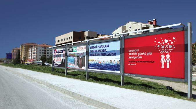 Eşinizin bu mutlu gününüzde kendisini özel hissetmesini ve mutlu olmasını istiyorsanız evlilik yıldönümü mesajınızı DO OUTDOOR reklam alanlarında yayınlayın, farkınızı ortaya koyun!